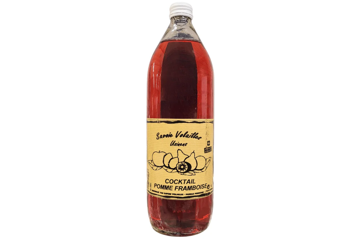 Ingrédient: jus de pomme et de framboise (10%). Le pur jus ne contient ni conservateur ni sucre ajouté.