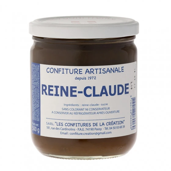 Ingrédients : Confiture de Reine-Claude (préparée avec 58g de fruit pour 100g). Peut contenir des noyaux. Sans colorant ni conservateur. Valeurs nutritionnelles moyennes pour 100g : Energie: 244 kcal/1033 kJ Lipides: 0.50 g dont acides gras saturés: 0.10 g Glucides: 58.50 g dont sucres: 48.50 g Protéines: 0.30 g Sel: 0.10 g