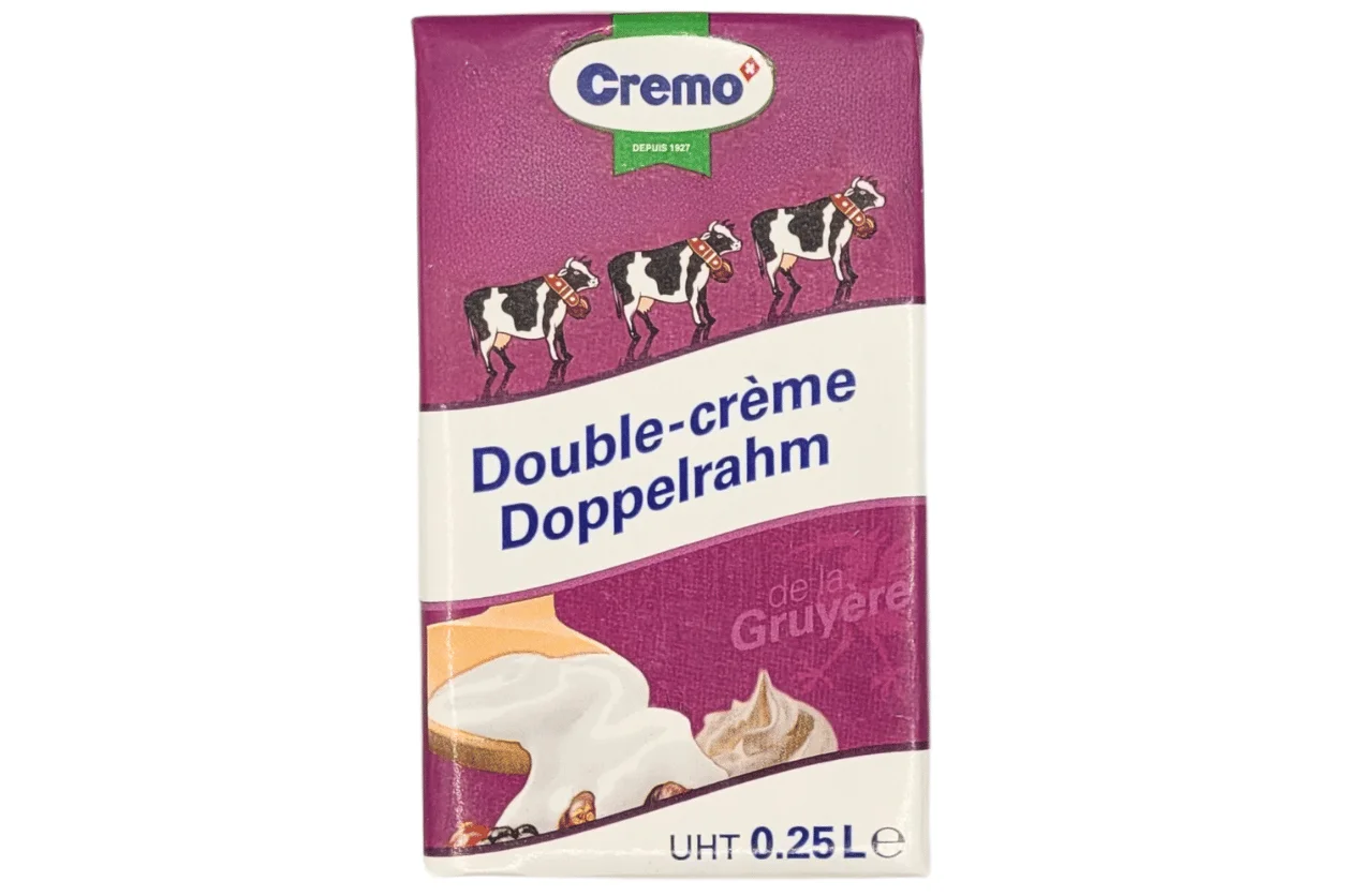 Ingrédients: Double-crème suisse (LAIT), stabilisant E407. Matière grasse 45%