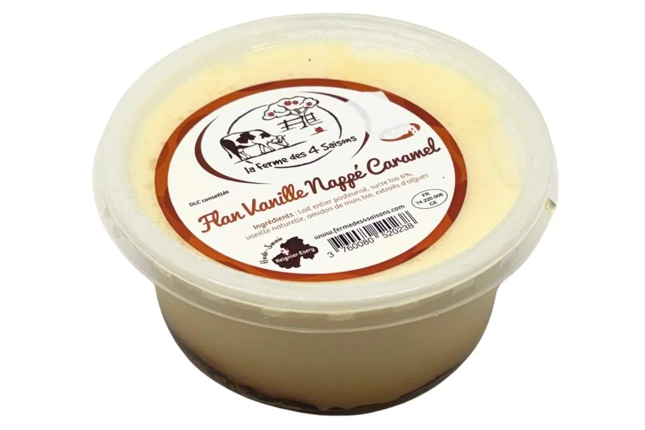du lait entier pasteurisé au fondant du caramel. Fabriqué artisanalement à la ferme, ce dessert met en avant des ingrédients simples et bio : sucre, amidon de maïs et véritable vanille naturelle. Sa texture onctueuse et son nappage gourmand en font une pause sucrée au goût authentique, fidèle au savoir-faire fermier savoyard