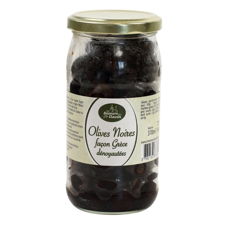 Les olives noires façon Grèce dénoyautées 370ml Les Saveurs du Clavon apportent une touche authentique et ensoleillÃ...
