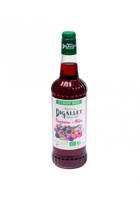 Pur sucre de betterave* de France, eau, jus de fruits* à base de jus concentré 15 % (framboise* 8 %, citron*, cassis*), jus de mûre* 6 %, arôme naturel de framboise*.*Ingrédients issus de l’agriculture biologique. Valeurs nutritionnelles moyennes pour 100g : Energie: 357 kcal/1491 kJ Lipides: g dont acides gras saturés: g Glucides: 86.00 g dont sucres: 86.00 g Protéines: g Sel: g