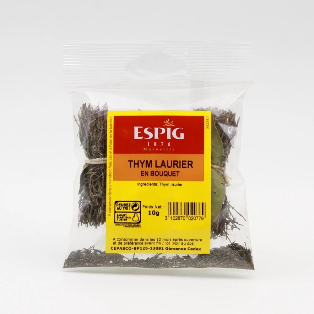 Ingrédients : Thym, laurier. Valeurs nutritionnelles moyennes pour 100g : Energie: 0 kcal/0 kJ Lipides: g dont acides gras saturés: g Glucides: g dont sucres: g Protéines: g Sel: g