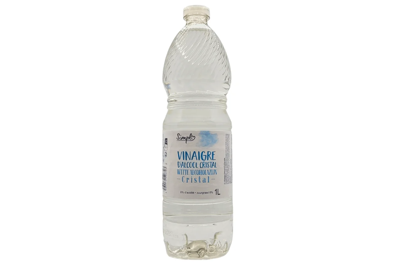 Eau, Vinaigre d’alcool blanc (dilué à 8°).