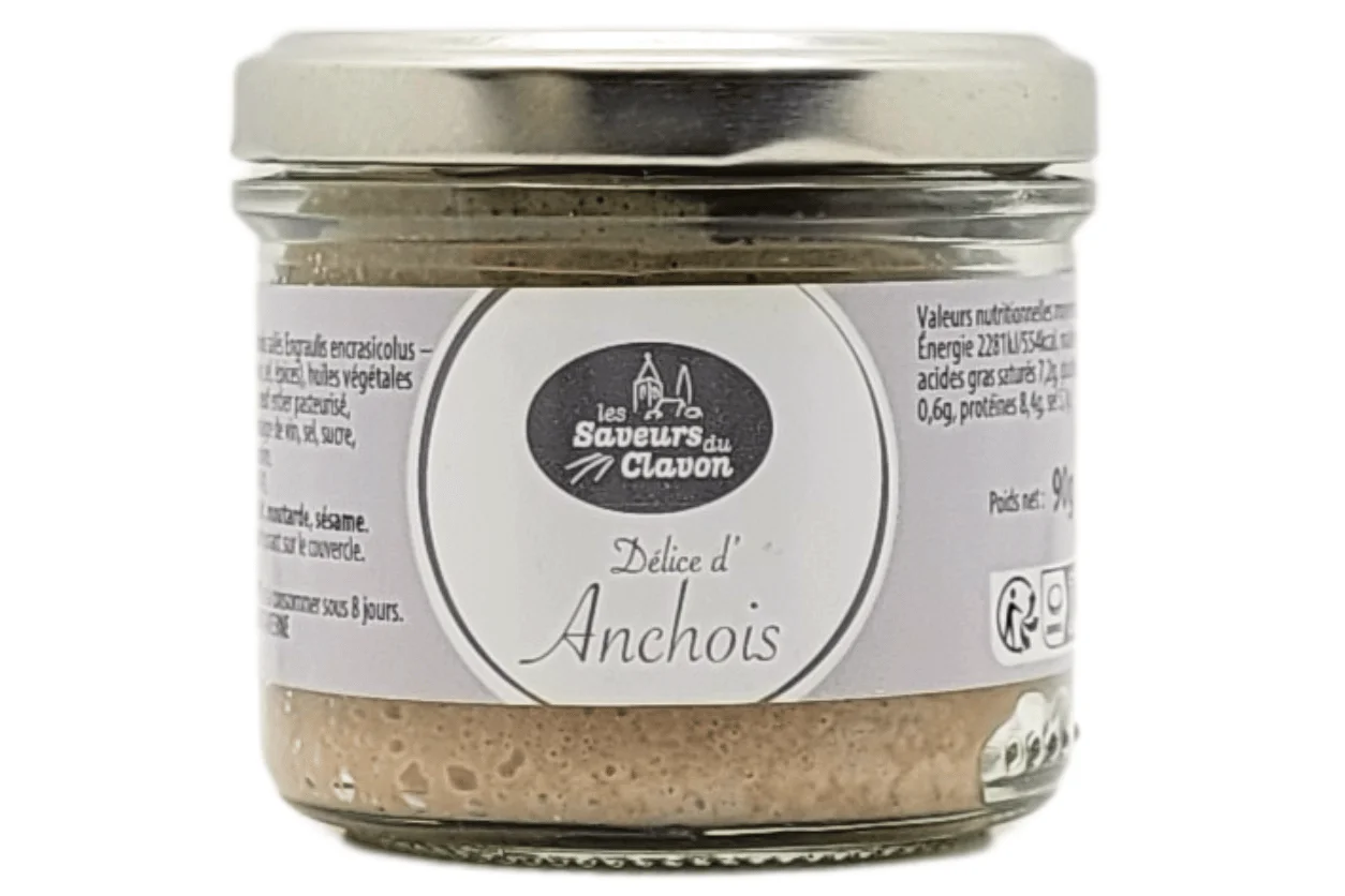 Préparation d'anchois assaisonnéeIngrédients : Crème d'anchois 43 %, huiles végétales, œuf, moutarde, poivre.