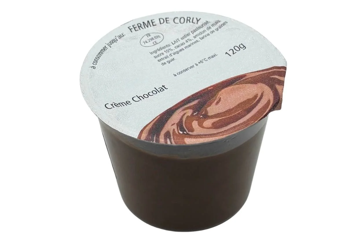 LAIT entier pasteurisé, sucre (10 %), cacao (4 %), amidon de maïs, extrait d’algues marines, farine de graines de guar.