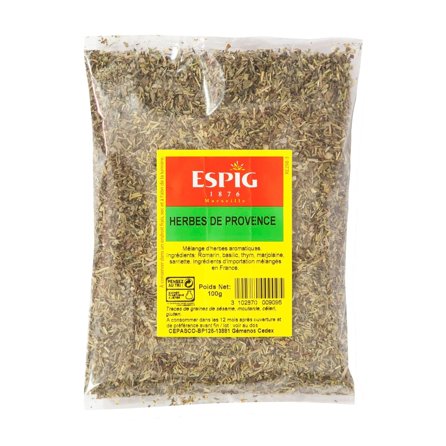 Ingrédients : Romarin, basilic, thym, marjolaine, sarriette. Valeurs nutritionnelles moyennes pour 100g : Energie: 0 kcal/0 kJ Lipides: g dont acides gras saturés: g Glucides: g dont sucres: g Protéines: g Sel: g