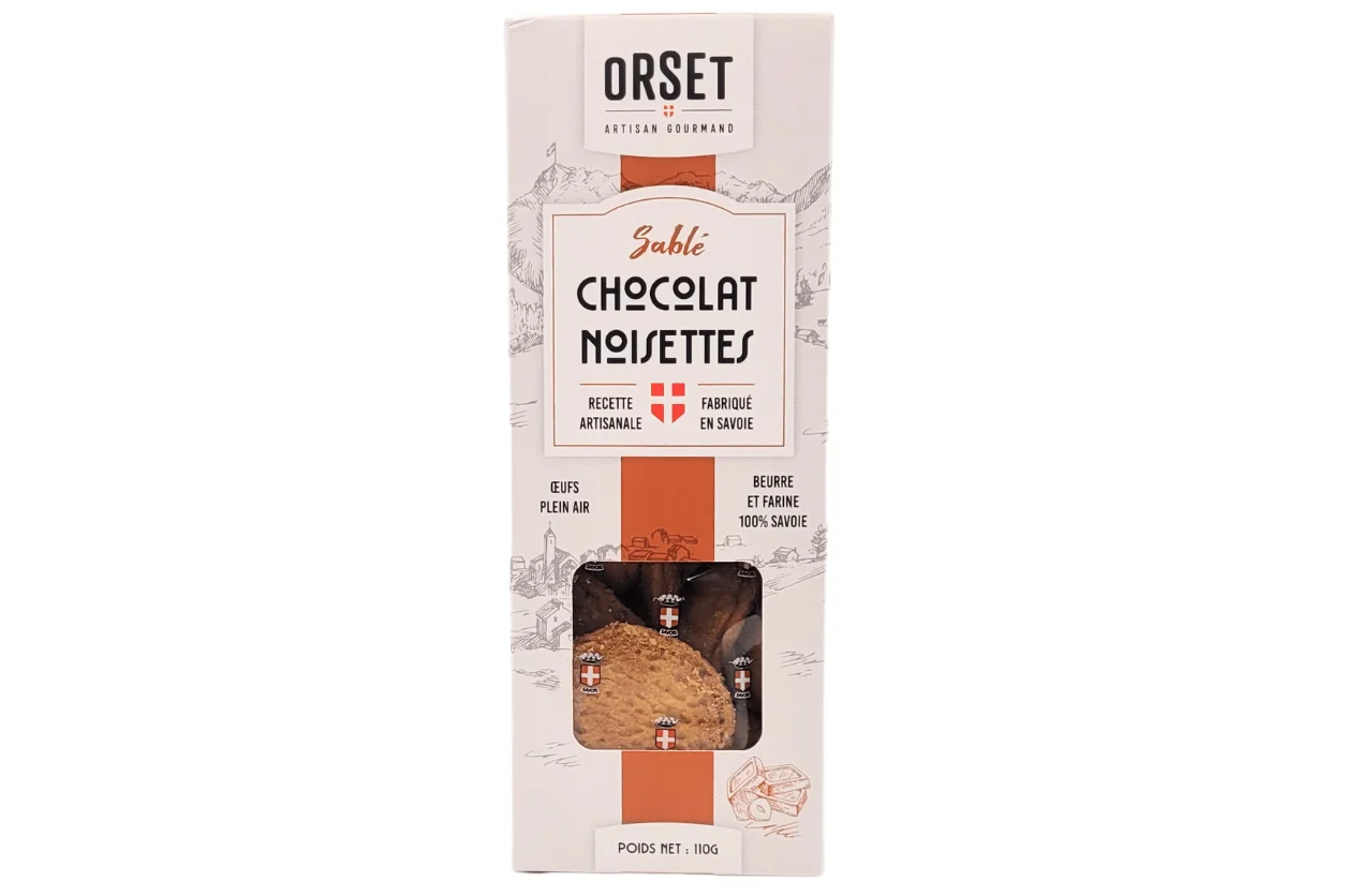 farine de blé GLUTEN de Savoie, beurre de Savoie 30 % (LAIT), sucre, œufs entiers plein air (ŒUFS), poudre à lever, fourrage chocolat 12 % (sucre, graisse végétale [palme, tournesol, karité] en proportion variable, poudre de lait écrémé 12 % (LAIT), pâte de noisettes 11 % (FRUITS À COQUES), pâte de cacao 4 %, poudre de cacao maigre 2.5 %, émulsifiant : lécithine de soja (SOJA), arôme vanilline).traces possibles de SESAME et d'ARACHIDE Valeurs nutritionnelles moyennes pour 100g : Energie: 500 kcal/2093 kJ Lipides: 25.00 g dont acides gras saturés: 17.00 g Glucides: 59.00 g dont sucres: 21.00 g Protéines: 8.40 g Sel: 0.09 g